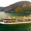 15:30: We will visit the Dark and Bright Cave – famous for the pristine natural beauty and poetic, attractive seascape of Lan Ha Bay. Here you will take some photos of the romantic, lyrical local see-sights. This is also the best time for tourists to enjoy bamboo boat and swimming – which is an interesting activity to discover the truest beauty of the limestone mountains and the blue sky of LanHa Bay. Afterwards, visitors immerse in the emerald green water of LanHa Bay with exciting swimming activities or enjoy mini pool with jacuzzi on Peony Cruise.